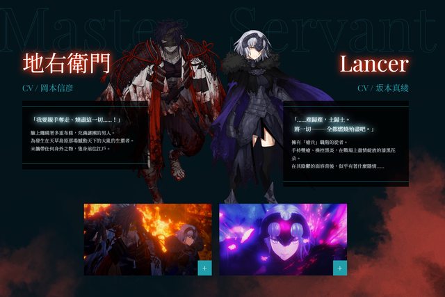 接著lancer是之前大家都很在意的黑貞,御主則是充滿謎團的男人地右衛門,是天草島原一揆的倖存者