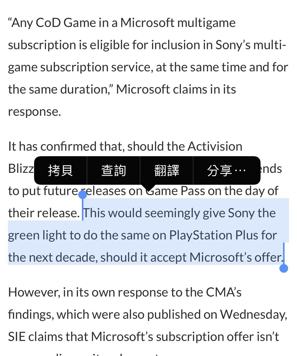 → zsyian: 在CMA審查之前,微軟提出的 07/19 11:45