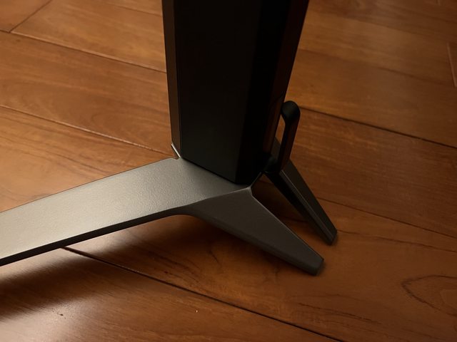 開始組裝螢幕,首先將支架插入底座上方