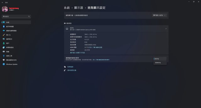 X27U在DP 1.4最大解析度4K/HDR/60Hz