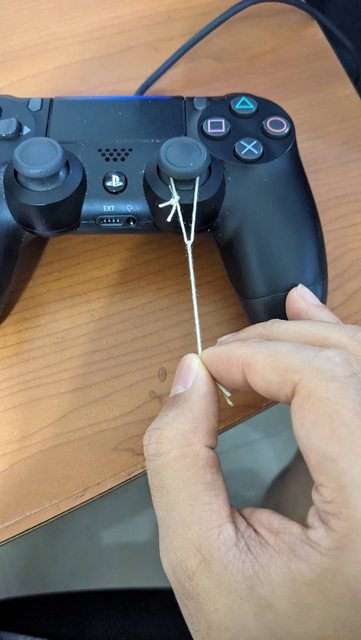 先用一條棉繩綁出一個圈套進右類比