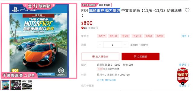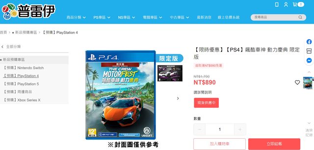 飆酷車神:動力慶典 部分網站特價中,不過數量蠻少的 https://i.imgur.com/6vqGN4X.jpg
