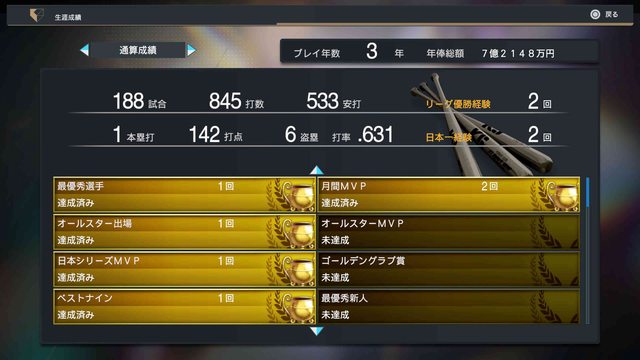 後面懶得打全部跳過,最後是六成五拿下打擊王和最高上壘率