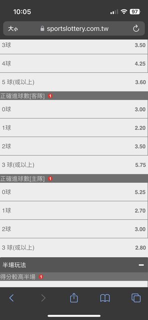 看和買了1:1 正確進球2