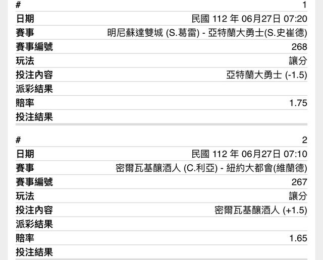 ※ 文章網址: https://pttweb.org.tw/SportLottery/M.1687786032.A.DFA