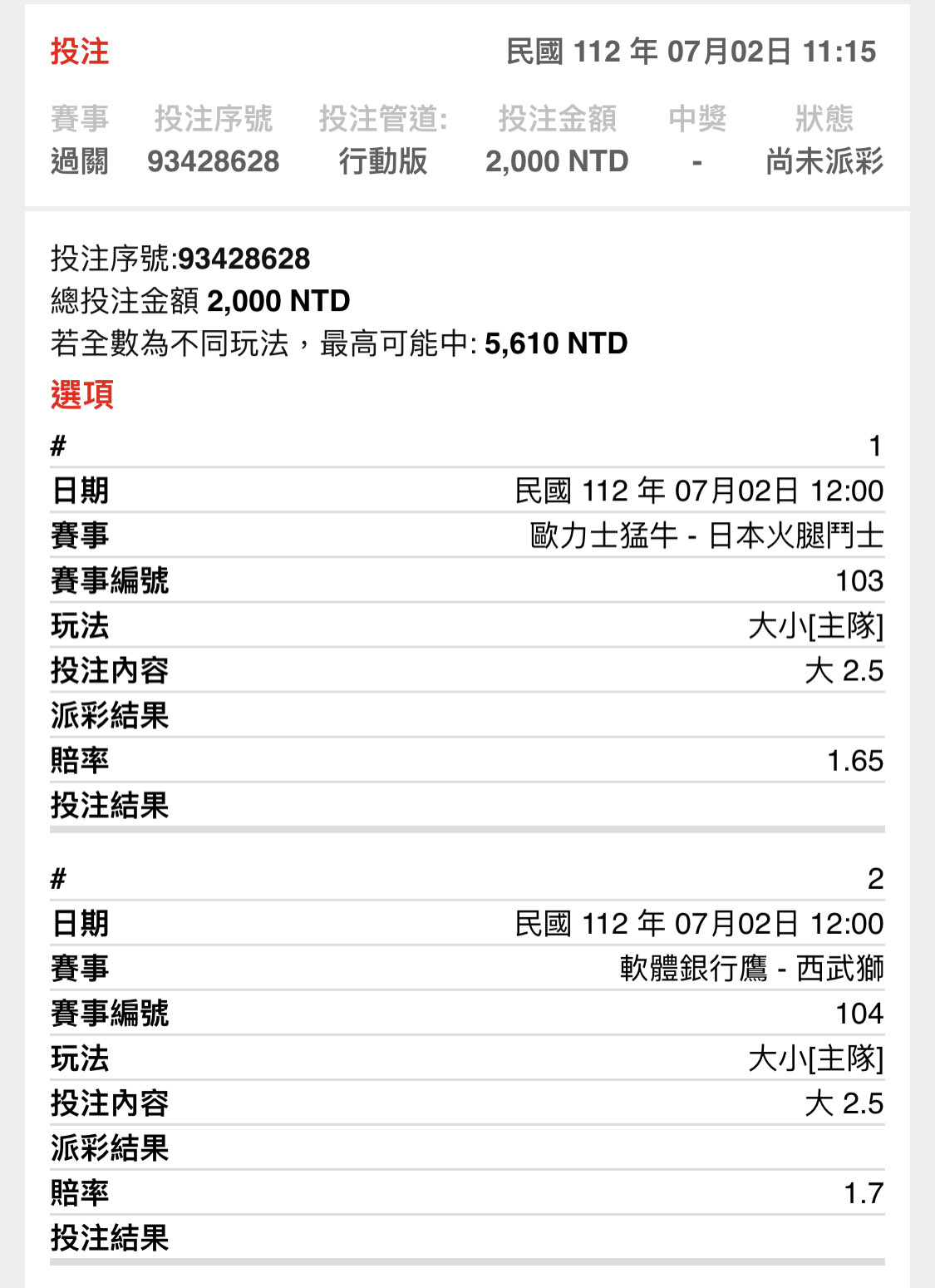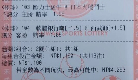 推 combo7393: 我買軟讓、腿2.5大大、樂天3.5大、巨人 101.10.105.96 07/02 15:31