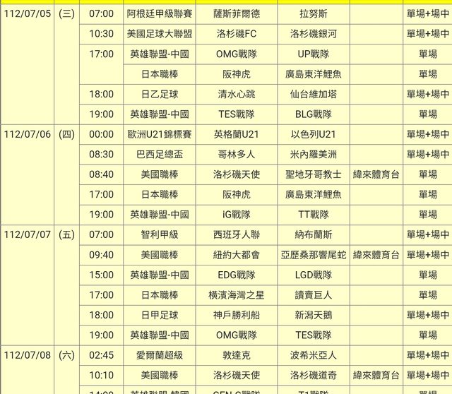 標題[情報] 112-07-05單場場中