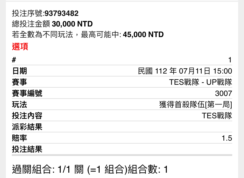 → lampar5566: 我買的單結果已經出來了 114.137.204.76 07/11 17:51