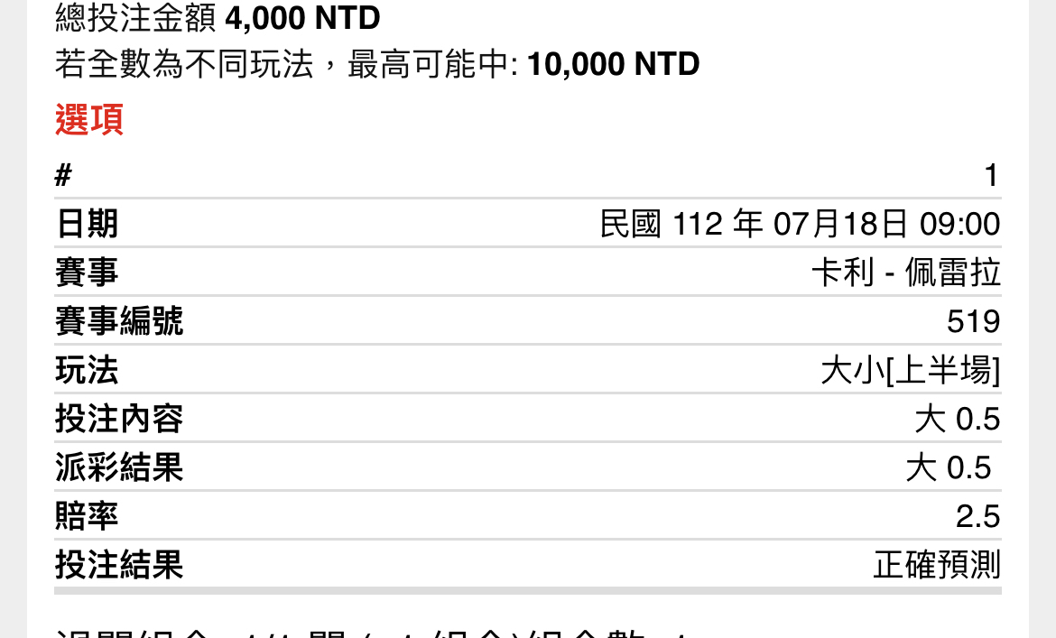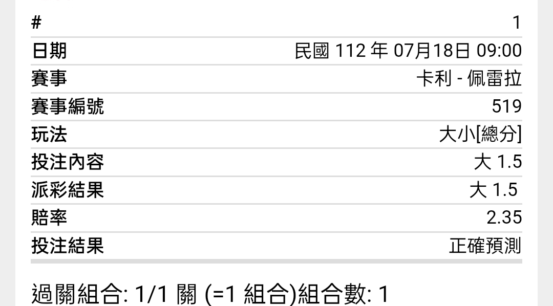 推 Leaflock: 1.5大和2.5大打平 上半破蛋補回上一場蛋 101.8.39.49 07/18 11:00