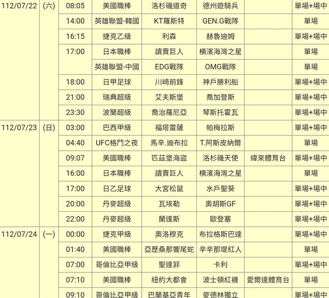 標題[情報] 112-07-22單場場中