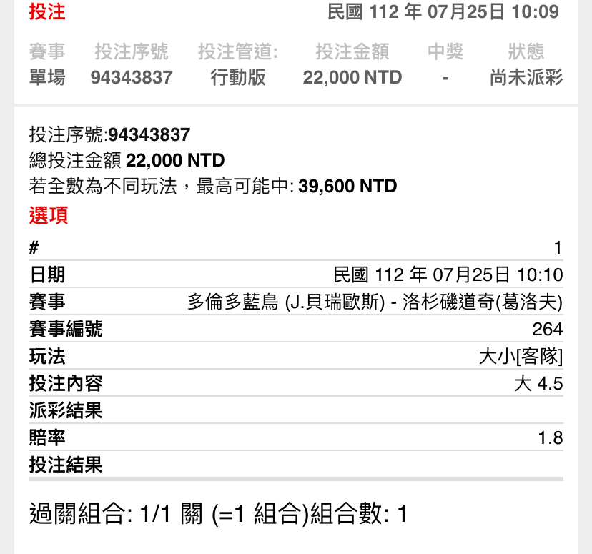 → instill8: 紅鳥22222。今天買道奇4.5主大串日職 加 219.68.158.203 07/25 09:51