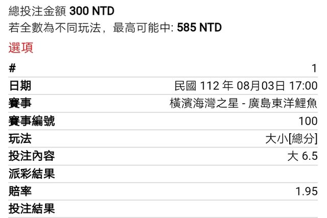 ※ 文章網址: https://pttweb.org.tw/SportLottery/M.1691038337.A.423