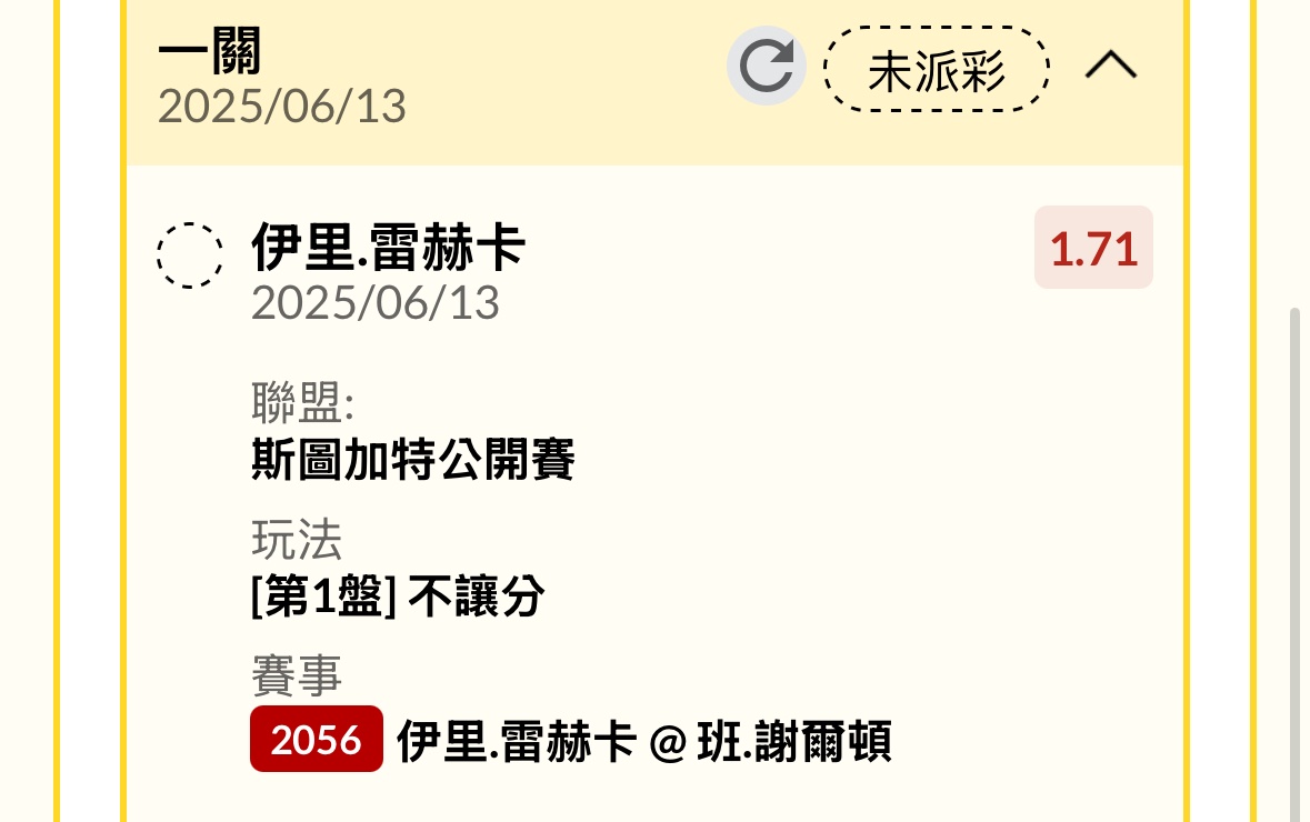 噓 hanhan1104: 賽前兩邊pk都1.72 場中直接1.6642.72.92.150 06/13 23:05
