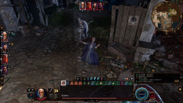 這時候四隻角色都還是由我控制的,可以看到選塔夫時,其他三人角色框的顏色是代表敵人的紅色,選擇其他角色時塔夫是淡淡的紅色,對友方施放的祝福術也不能對塔夫施放