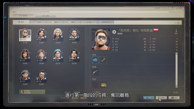 的傭兵中挑選合適的隊員開始第一階段的任務:奪回離島。通常是會選3-4位。(其中可以