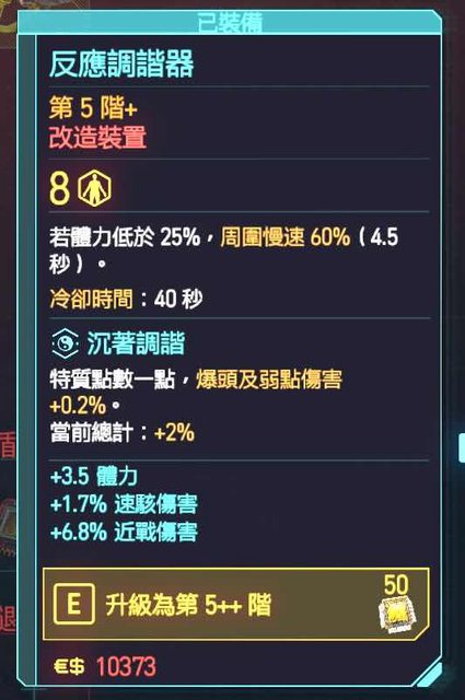分享一下個人的build,能五星和警察對砍永遠不死 特勤四佬大概一萬血上下。能開沙坦慢慢刮死 武器就拿白虎,越砍越快近戰第一強 重點改造物如下,沒滿的隨便塞,建議塞滿