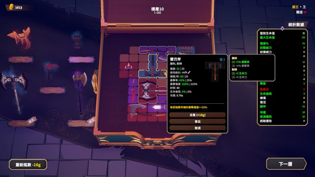 規劃道具空間與Build,並且挑選高階道具挑戰下一層直到打尾王,大概是這武器大師的