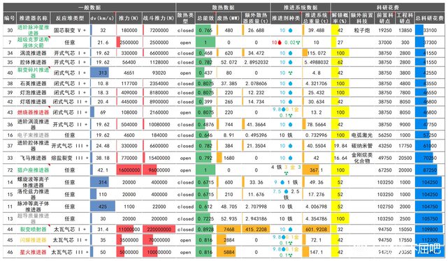 遊戲中有上百種引擎可以研發使用,不同的引擎搭配的反應爐類型也不一樣,