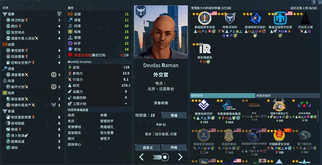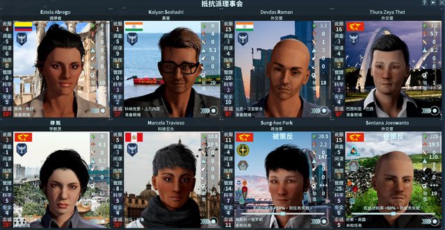 遊戲前期主要就是操作特使去控制國家、帶風向提高派系支持度、拉攏或暗殺敵方特使、