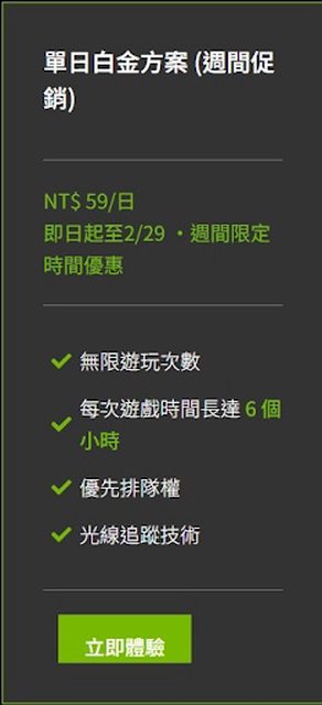 : 所以在想要不要訂個GFN的白金單日方案應急。