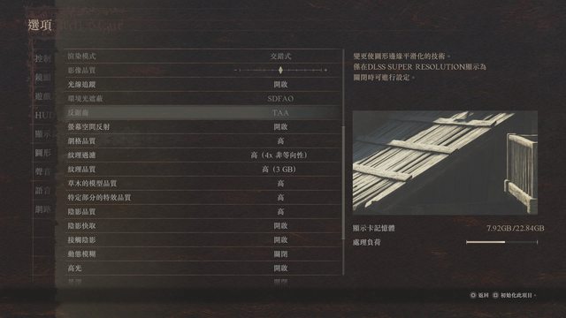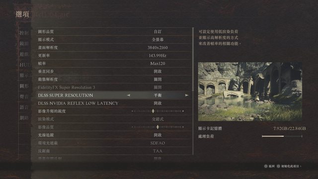 畫質預設皆高/關閉垂直同步/N卡開DLSS:平衡/A卡開FSR:平衡