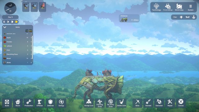經營階段,在地圖讓小木靈們採集資源(採收、挖掘、加工)