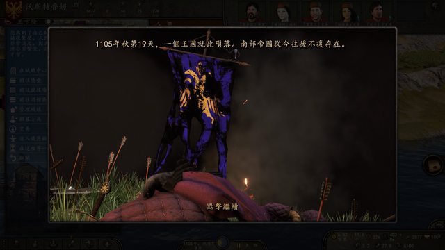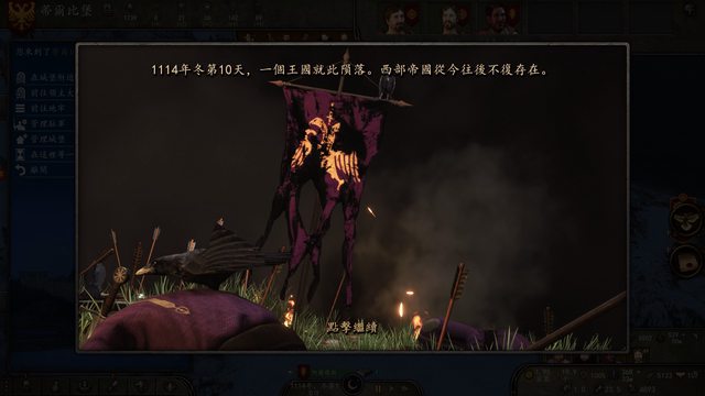 為了永絕後患,帝皇撕毀芙蘭迪亞的求和信,手下鐵騎繼續西進,在一年後的1115年冬季