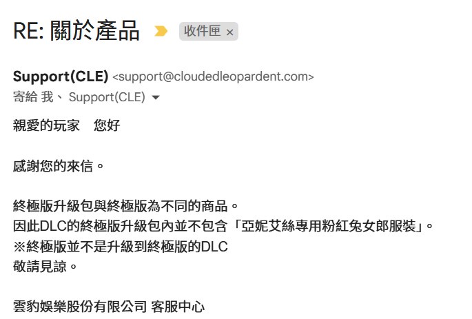 → Clavius: 問了一下如果你要亞妮艾絲專用粉紅兔女郎服裝DLC,那要直 01/23 18:30