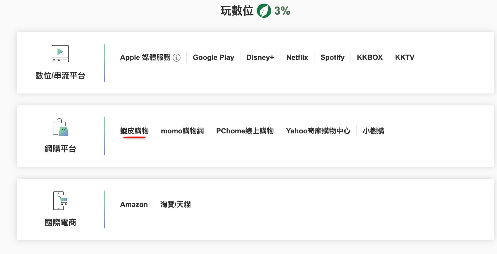 推 marrylamb : 刷蝦皮跟淘寶都在玩數位 3%現在還行啦 只是扣點麻煩 08/08 13:56