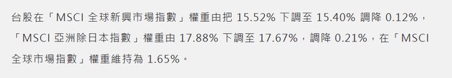 推 moon1991 : 台灣整體權重調降的樣子,是不是造成近期外資賣出 08/11 09:42