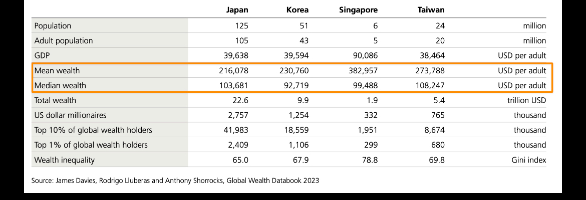 你根本還沒算入勞退專戶的錢啊 如果計算了 新加坡就100萬以下的族群 資產就大噴發了