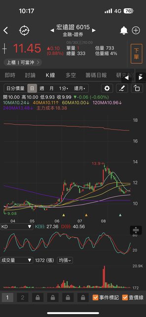 標題 [標的] 6015 宏遠證 低檔抄底多