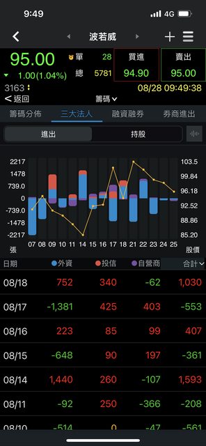 : 投信8月中進場(相對高點)也沒有出場跡象,會持盤或找機會再拉高