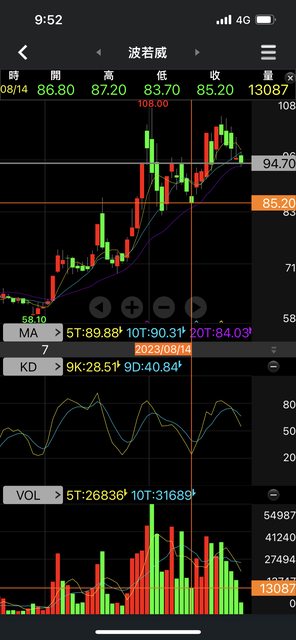 謝謝各位,上次到20日線搶反彈,現在已經到獲利停利點了,先出一半。
