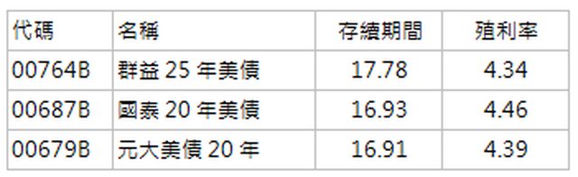 : 00764B的存續期間最長,只要FED下降1% 就會上漲17.78%