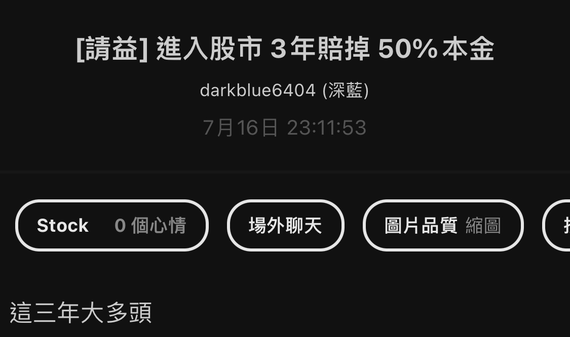 → darkblue6404: ...我就是賠太多錢 學到很多經驗 才能分享給大家 10/07 07:54