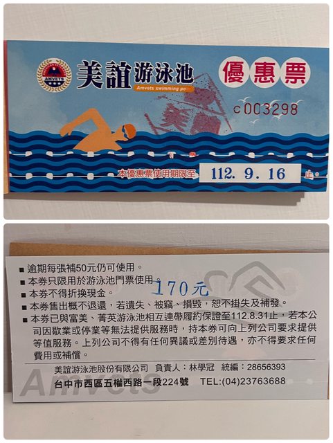 [交易] 美誼游泳池票3張