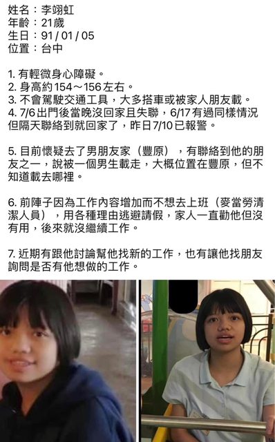 推 peaceyly : 幫推,希望早點找到人… 07/19 14:45
