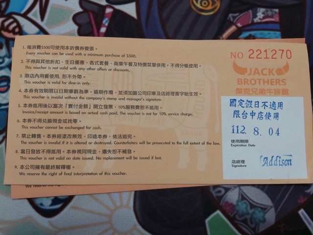 標題[交換] 傑克牛排折價券100*3換飲料