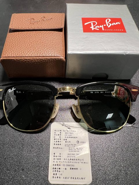 8.RayBan RB2176 901 CLUBMASTER FOLDING 折疊眉框太陽眼鏡 九成新