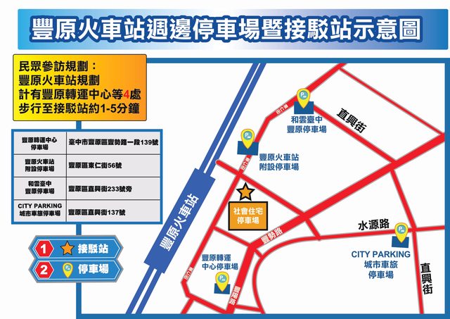 (2)豐原火車站-社會住宅停車場(豐原區豐勢路一段135巷20弄7號)。
