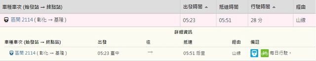 間車2114號,不然就提早約1個小時搭前一班326號。