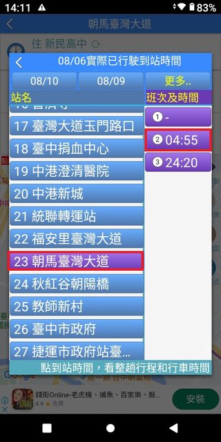 朝馬-台灣大道站(4:55~5:00)到第一廣場站(5:15~5:16),強行軍7~8分鐘內進台中車站搭區