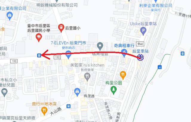 3.火車下站後,步行350公尺至后里車站(后里國小)站,
