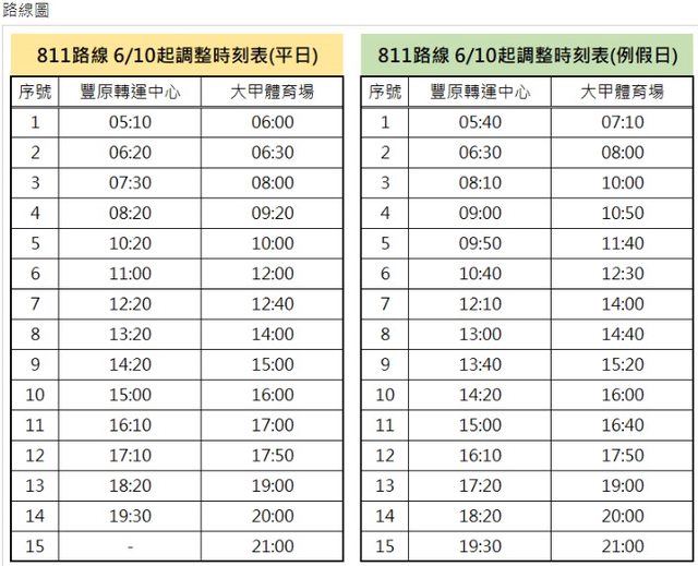 因公車811號發車時間有分平日、假日,所以有以下新方案: