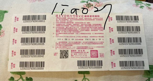 物品名稱:遠東百貨商品劵/禮卷 共四張