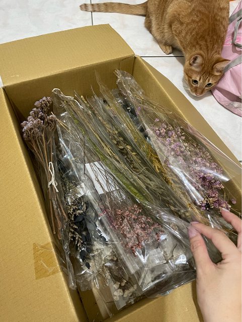 花材拋售出清,因為久放所以狀態不像跟做好時那樣好,介意勿買,通通便宜賣! 因為健康因素,以能夠一次帶走為佳。 全收再-100 一整箱乾燥花材$500+鐵絲 (原價值絕對超過1000,懶得一束束拍)