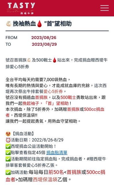 標題[資訊] 8/26-8/29 西堤牛排捐血活動