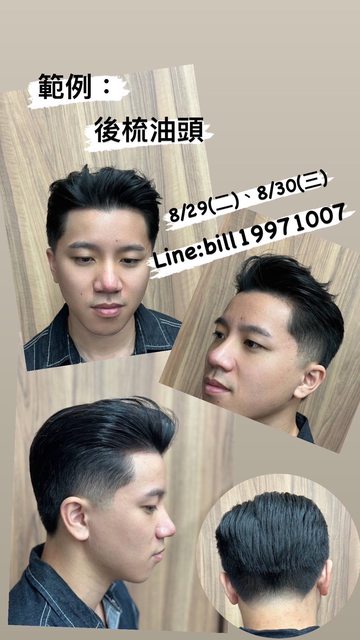 時間:8/29(二)、8/30(三)後梳油頭、寸頭
