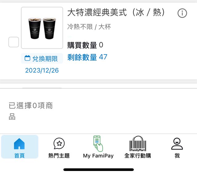 [交易] 全家大特濃美式咖啡冰熱皆可